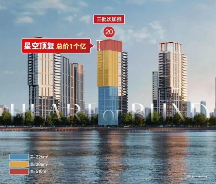 加推的27套房源位于20单元,清一色头排瞰江大宅,其中26套为滨江头排建面约226&286㎡全景舱户型,另有1套亿元星空顶复。