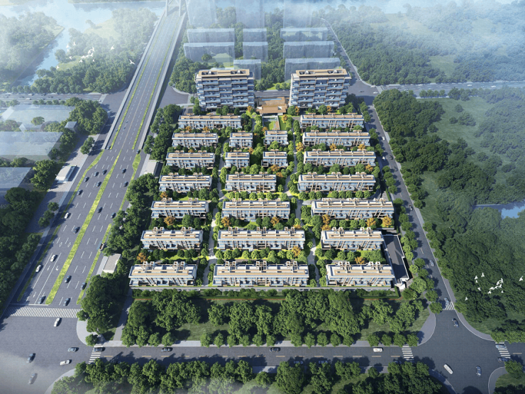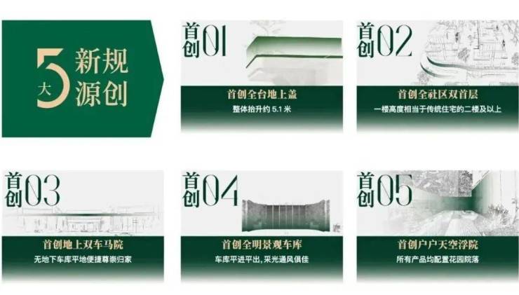 以苏州园林为蓝本,根植崧泽文化源脉,打造五进雅正园林:一进双境车马院-二进下沉庭院-三进连廊环绕-四进宅间花园-五进私家宅院。