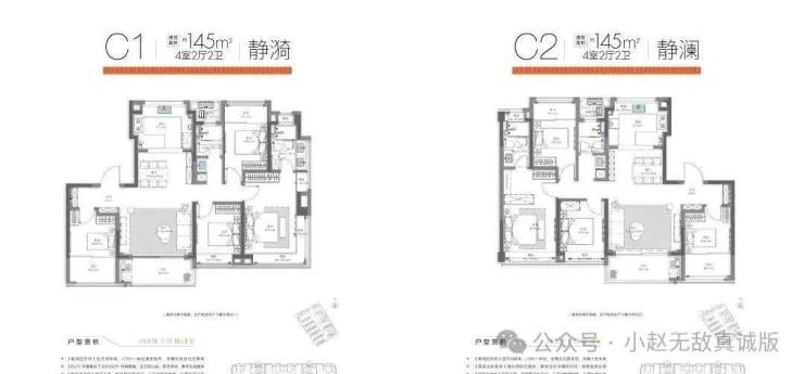 建面145㎡4房,真正意义上的改善户型,四开间朝南,南北三阳台设计!南侧阳台如果打通,那就可以获得一个“跑道式”阳台;如果选择和房间打通,单人卧室可秒变双人卧室,北房间同理。