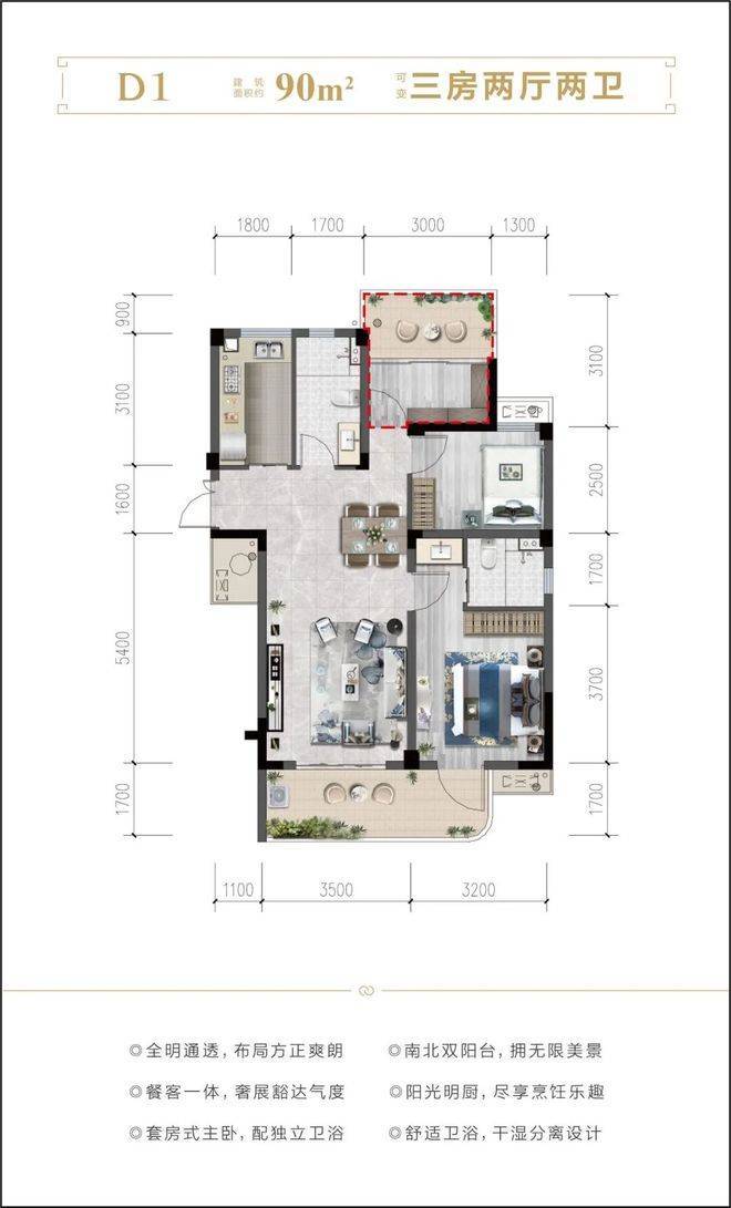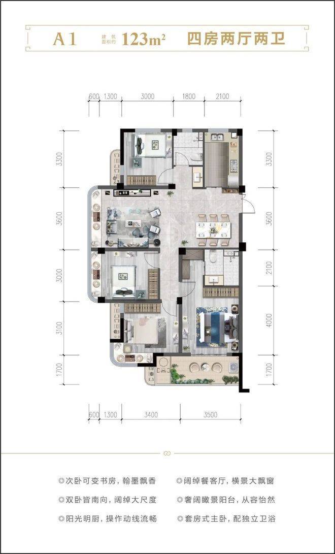 户型细节:瞰景阳台的转角皆优化为圆弧形设计,不仅体现了柔和的美感、也进一步提升了产品独特品质感。