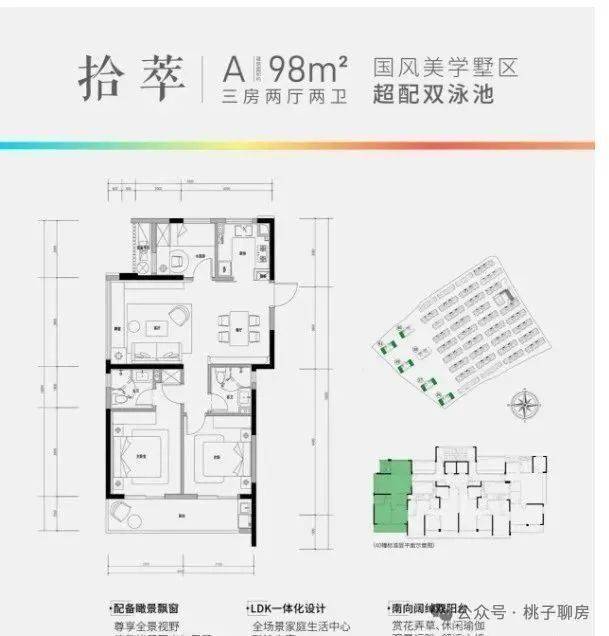 :示范区投入近300万引入日本罗汉松、羽毛枫造景,入口门楼退让十米打造全石材落客广场,高层电梯入户厅墙面石材干挂,户型实用率高达90%,边套98㎡、中间套94㎡均做到三房两卫,空间利用率极致。
