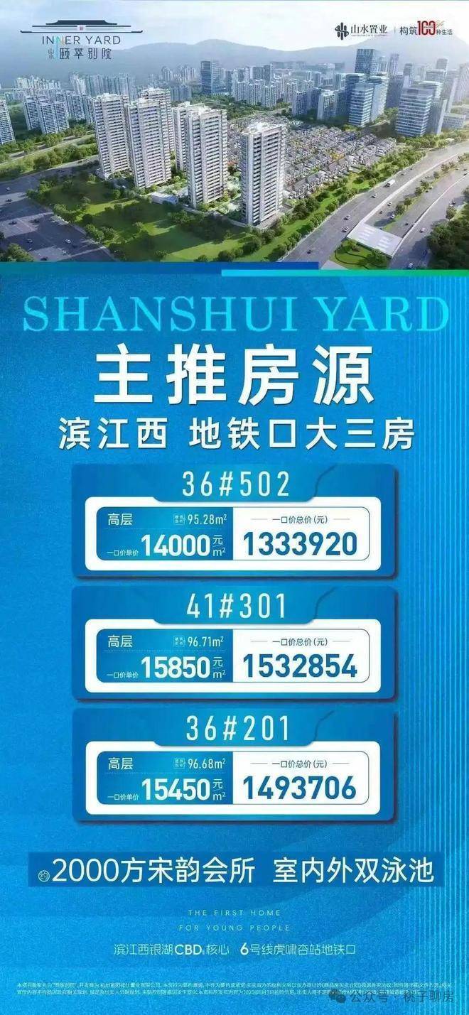 山水颐萃别院位于杭州市富阳区银湖科技城板块,紧邻地铁6号线虎啸杏站B出口100米,是集高层与联排产品于一体的低密社区。项目由山水置业开发,总户数543户(高层),主打“刚需价格+高端配置”的差异化定位,高层主力户型94-111㎡,总价150万级起,首付17万起即可上车,2027年交付,物业费3.1元/平(含能耗)。山水颐萃别院售楼处电话☎:400-8558-224✔✔✔【预约☎】