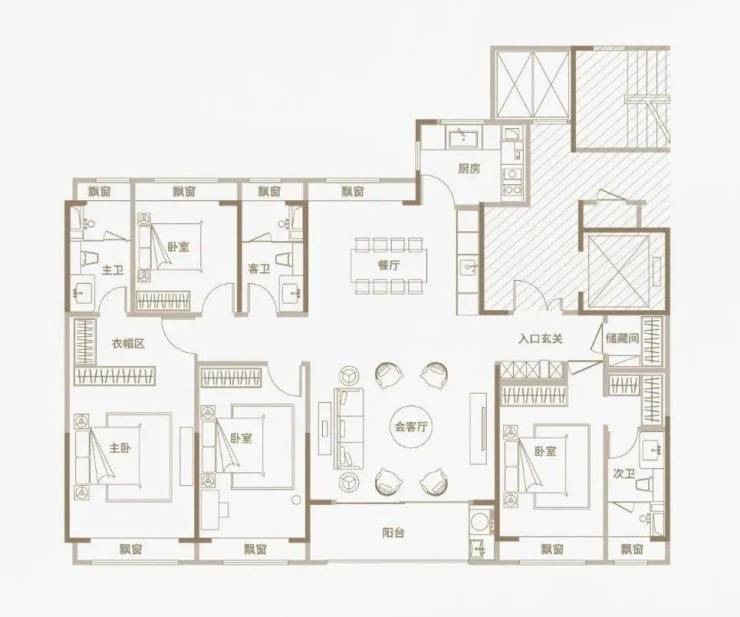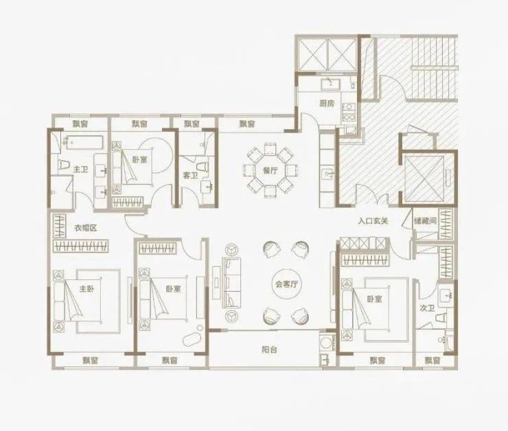 光从户型图来看,三种户型均为四开间朝南设计,同比市面上两百平左右的平层住宅,南向面宽资源更为宽阔;三种户型均打造出了4房2厅3卫的全能格局,主卧+次卧为双套房设计;此外,所有空间皆为全明设计,全屋多达8个飘窗!