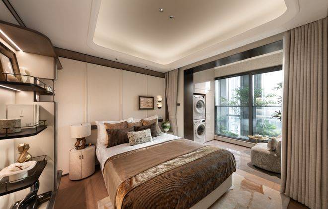 主卧通过270°转角飘窗,将复兴岛与黄浦江的景致全方位拥揽入怀;双次卧也毫不逊色,无遮挡直面杨树浦水厂地标与黄浦江风光,让每位家庭成员都能私享江景盛宴。