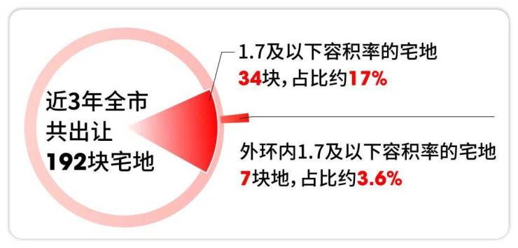 据小胖君统计,近3年全市共出让192块宅地,其中1.7及以下容积率的低密社区,仅34块,占比约17%。