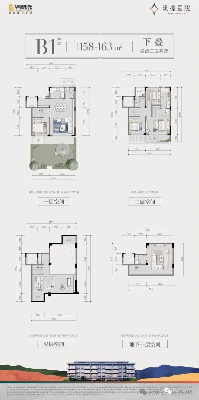 建面约158~163㎡下叠:地下室主题空间打造/餐客连厅/奢华主卧套房/独立三房