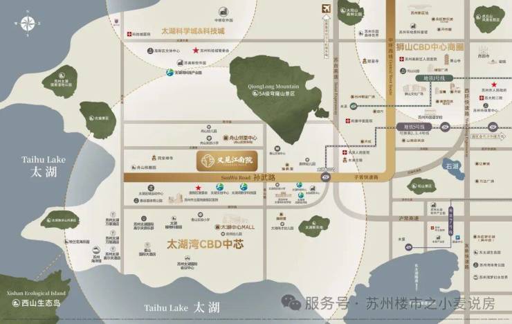 坐拥2400k㎡浩瀚太湖,背倚穹窿山。背山面水,藏风聚气,家业永固。独享112k㎡山林绿海,44.18%植被覆盖率,私藏光福香雪海、天平山等自然瑰宝。