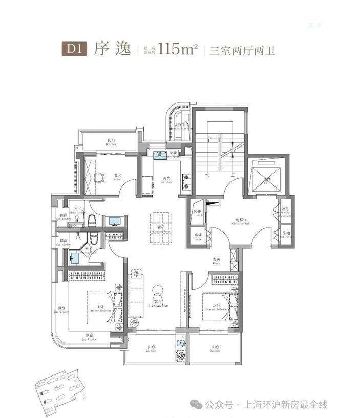主力100-115㎡三房:实得率超90%,空间利用率对标竞品114-120㎡户型2