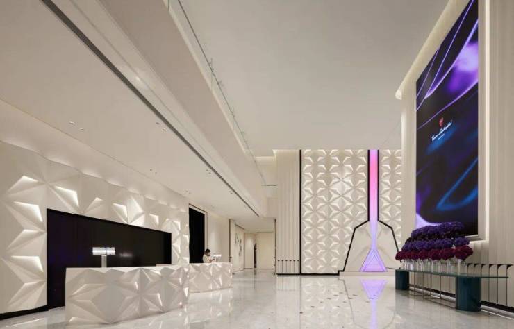 由SWS设计团队复刻兰博基尼Huracán元素,碳纤维墙面与流线金属格栅打造未来感。