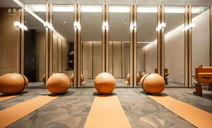 【璞境瑜伽】同样配备“舒温”科技,引入迪拜帆船酒店同款的英国沃特罗伦顶级器械,采用的瑜伽球等设备皆采用意大利牛皮纯手工缝制,自然庭院的通透格局,绿植与鲜氧无界融入空间,在静谧中,达成身心合一;