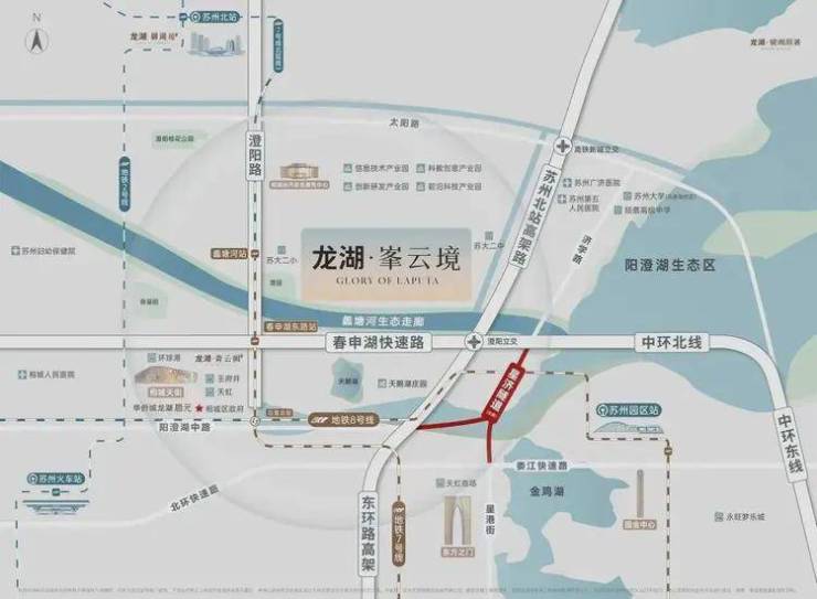 咫此近享双轨(地铁7-延长线在建/8号线)、双环(中环北线/苏州北高架路)一隧(阳澄湖星济隧道-在建)、等全维立体交通,4站苏州北,6站抵园区,约10min至龙湖·相城天街,约15min直通高铁站,约22min畅达园区。
