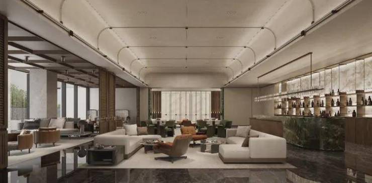 约110M超大尺度城市界面,仪式水景拾级而上,定制级艺术雕塑,酒店礼遇仪式侯迎隐奢归家。