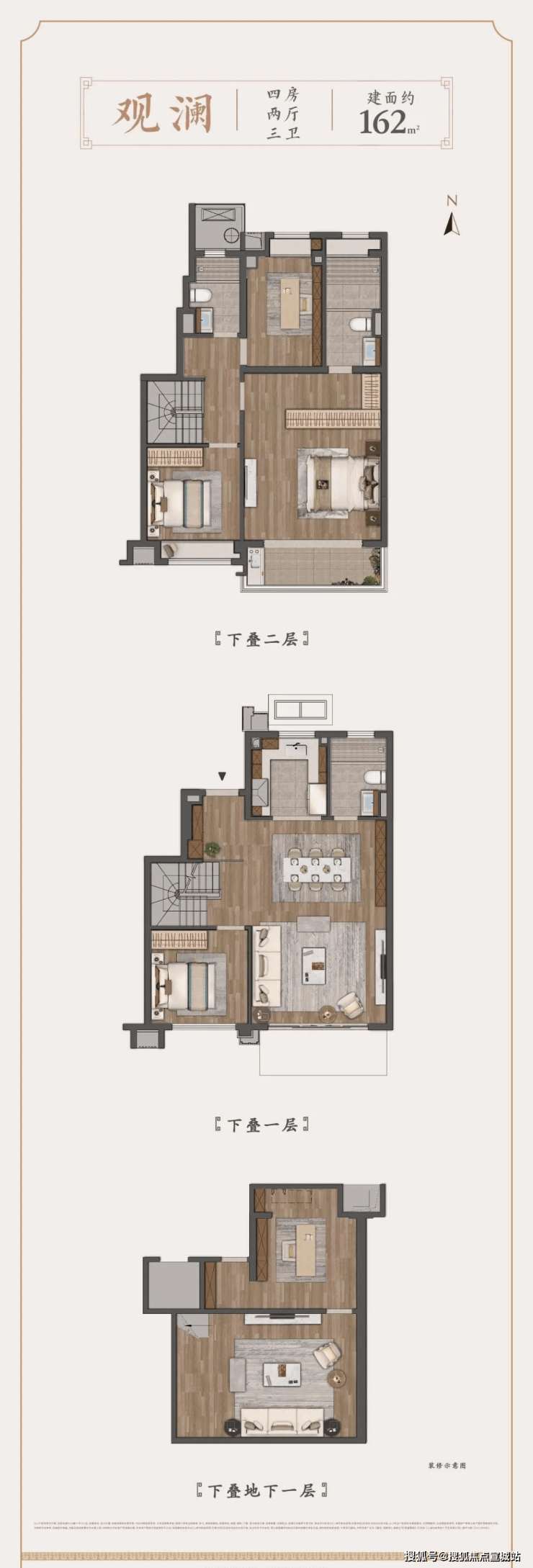下叠建面约162㎡4房户型▼