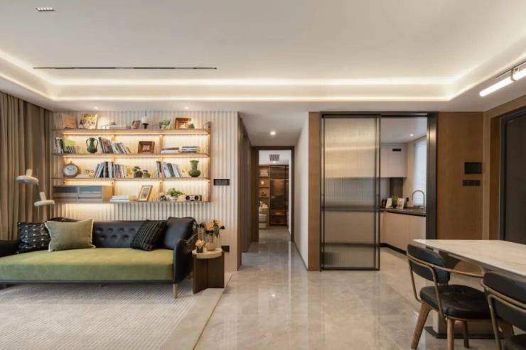 LDKB一体式打造,联动餐厨空间和休闲区,配上超大景观阳台,将室外景色引入户内,打破空间边界,引飞叶与花香穿堂留痕。阳台作为现代人向往自然的精神角落,以秘境庄园为主题进行空间设计,居家步履的尽头,邂逅勃勃生机。周末的午后,阳光打在摇椅上,品一盏清茗,暖意在花间鸟语中绽放。