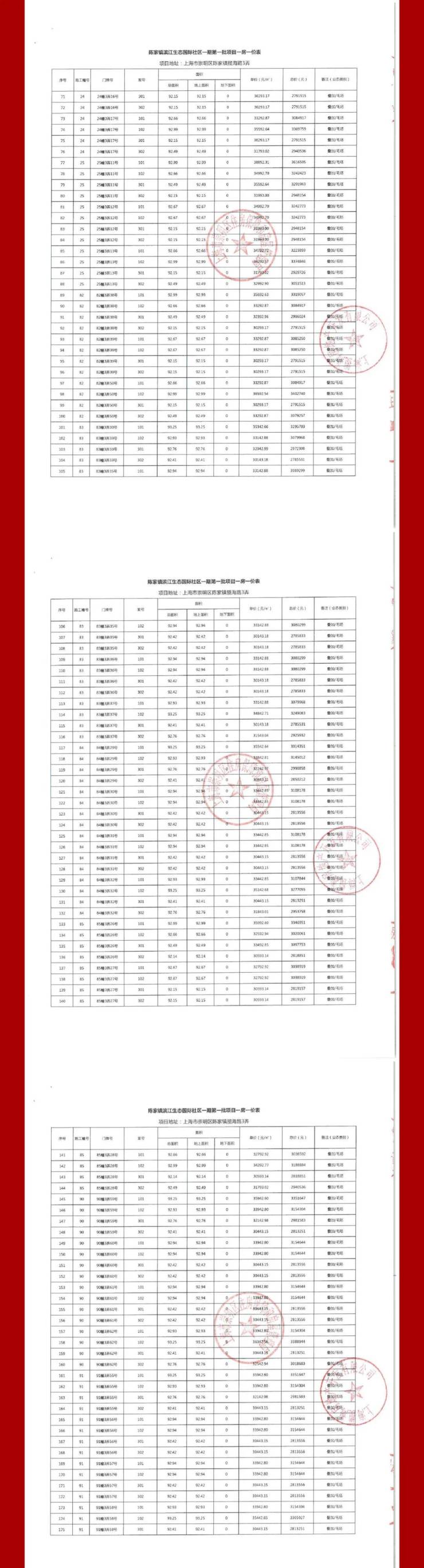 一房一价表公示: