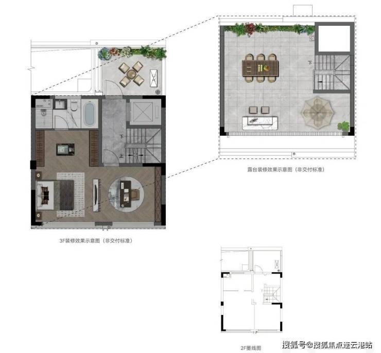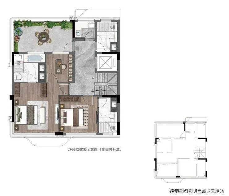 三楼也是双套房,朝北带露台,并且顶楼还送一个大露台(无需二次改造)。