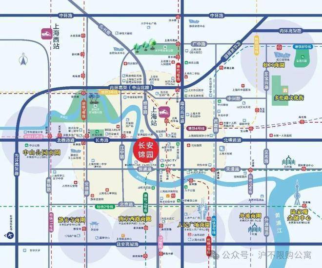 轨交:地铁1号线上海火车站730米,13号线江宁路站850米,1/12/13号线汉中路站875米