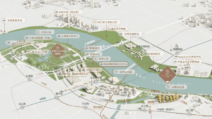 从地图来看,项目与汤臣一品和中粮海景壹号等顶豪住区享有相同的视野与距离,同频一线黄浦江景。