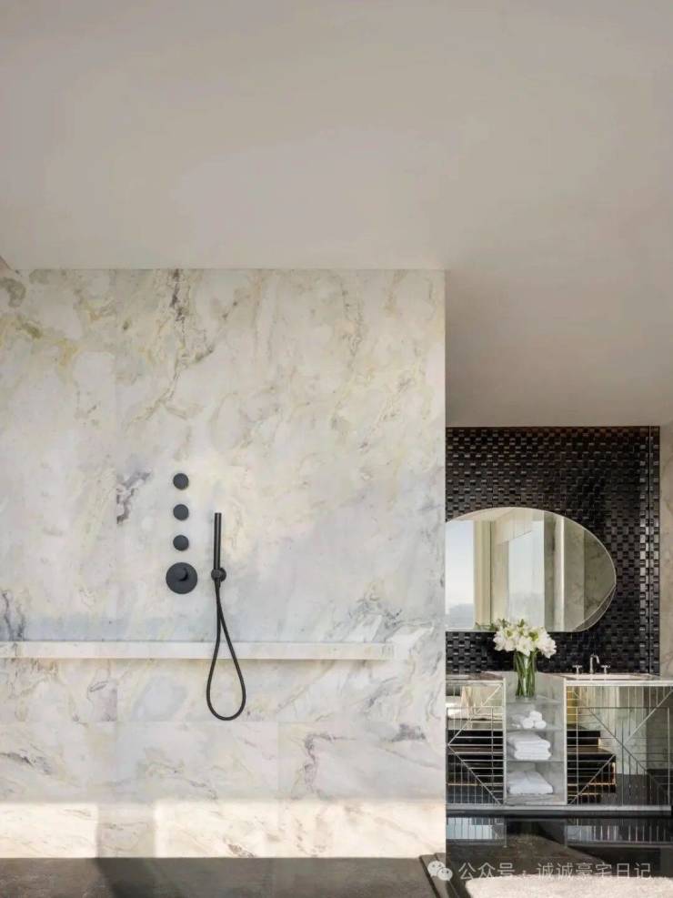 从选材来看,各种奢侈品级石材随处可见,比如与 北京钓鱼台国宾馆同款的意大利进口鱼肚白石材,造价高达约2万/㎡,被誉为“世界上最贵的石材之一”!