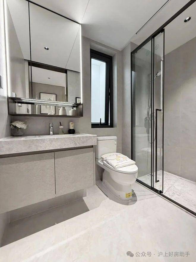 主卫智能一体马桶、顶喷花洒等配置齐全,玄关柜整体交付,诠释有温度的精致人居,更多细节就留待各位现场发掘