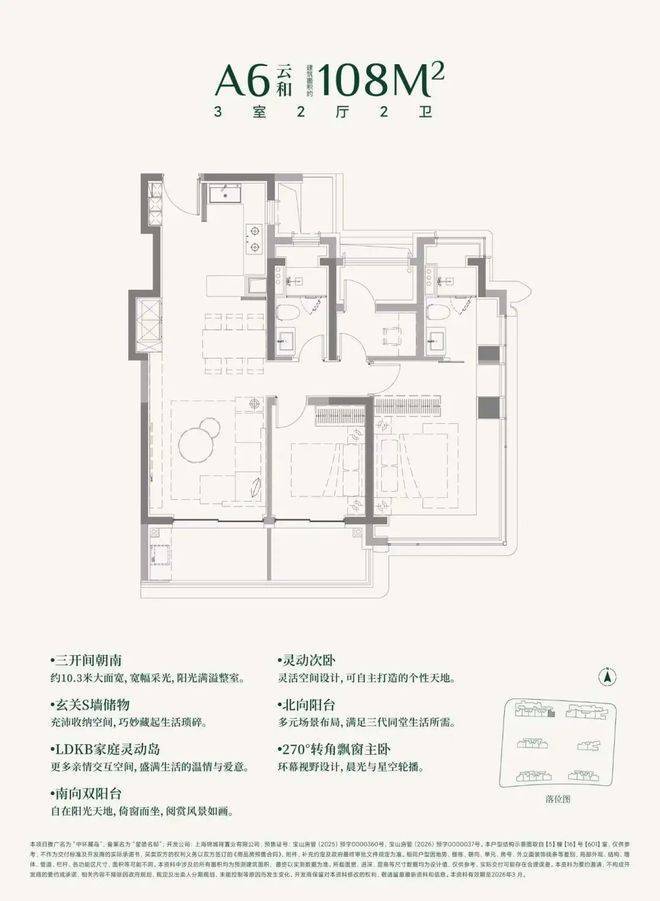 建面约108㎡3房的三阳台面积就高达约13㎡。(阳台仅附赠一半面积)
