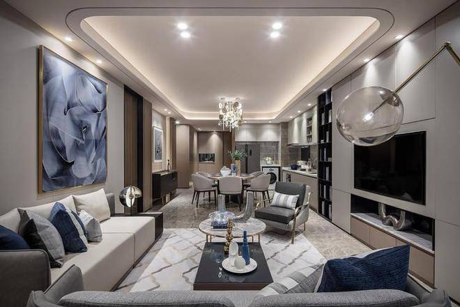 【豪阔宽厅】近53㎡豪阔一体化客餐厅,面宽近6米,宴客轰趴的情感交流场。