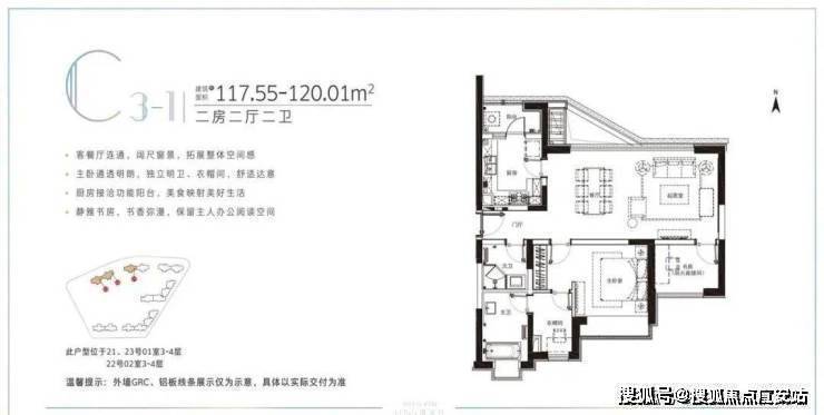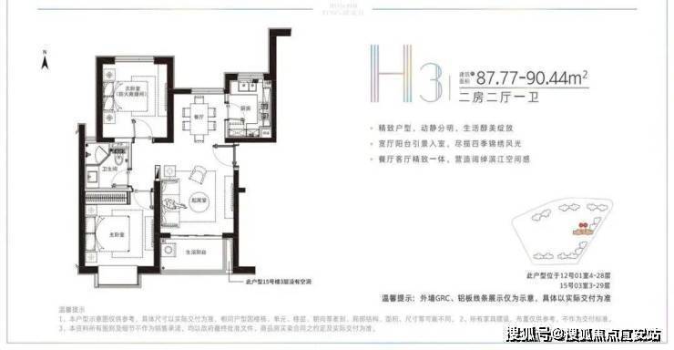 建面约78-91.22平米的小户型,两房两厅一卫的格局,非常适合年轻刚需家庭上车。