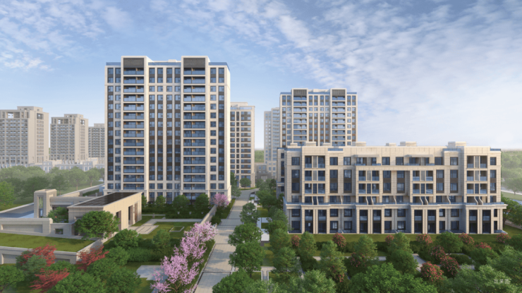 整个区域以九宫格的布局展开,涵盖了住宅+商业+教育配套,项目继承经典海派的建筑风格,通过外立面层次的打造和立面细节的打磨,使得小区外观更有现代感。