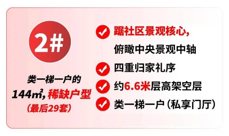 该栋约144㎡户型采用类一梯一户设计,享独立门厅体验,本次推出最后29套,席位珍贵。