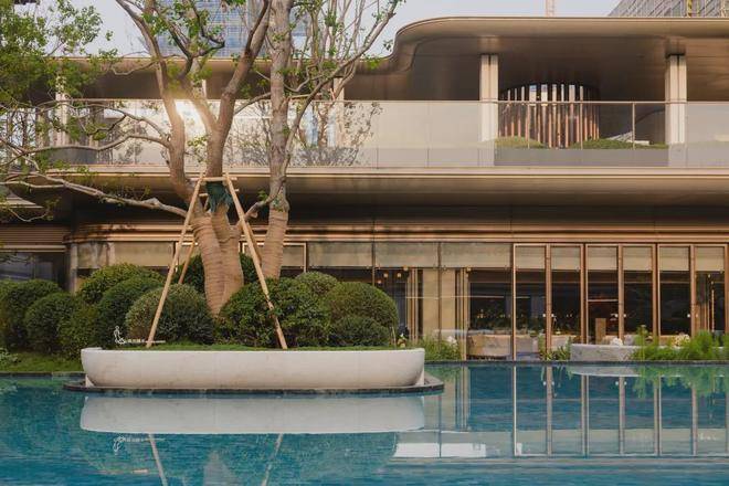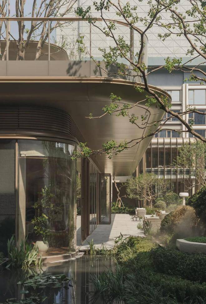 保利天奕售楼处电话:400-8818-994(官方最新统一售楼处电话4008818994)庭院景观以西湖荷花为核心设计元素之一,水桥的形态则借鉴并转译西溪湿地的自然肌理,使整体空间在文化意象与自然特征之间建立关联。