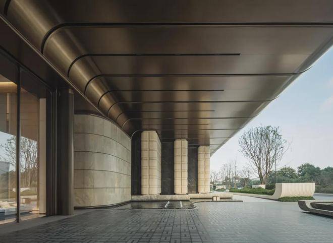 保利天奕售楼处电话:400-8818-994(官方最新统一售楼处电话4008818994)主入口以杭州博物馆镇馆之宝“玉琮”为设计原型,将其转译为序列化的柱式与石台。立面材质融入玉琮的色泽与纹理回应江南独有的历史文化底蕴。