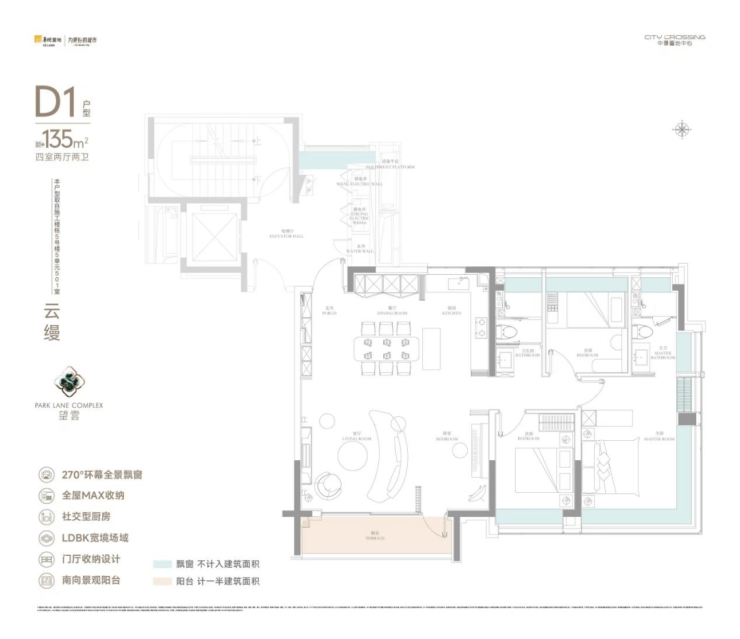 望雲精研8层公园电梯洋房形制,为居者营造出自然亲地、花鸟比邻、四季皆景的低密公园洋房社区。建面约135㎡臻稀洋房,区别于高层住宅的局促布局,以坐北朝南的经典规制匠筑户型基底、以大面宽采光界面打破室内外界限,实现“全屋无暗角”的光影奢享;以低密规划构建纯粹居住场域,打造私密尊崇的生活边界;匠筑LDBK宽境场域、用超高得房率给予居者更高舒适度、以超越常规的楼间距尺度重构生活边界。南向宽奢景观阳台,让居者享有更大绿化空间的同时享有更丰盈的景观视野,给予生活更多的自然绿意和充足阳光。