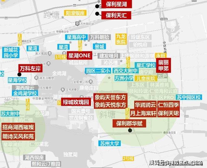 双轨交汇黄金四角环湖四轨交汇,缔造金鸡湖黄金四角,西北-东方之门、东北-时代广场、西南-李公堤、东南斜塘老街一黄金四角所在核芯价值所向.