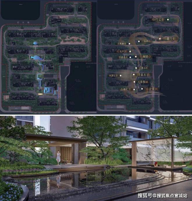 山水入画营造下沉式中央庭院,约12米飞流星瀑,臻选蓝翡翠奢石打造银河水境,百年丛生乌桕封藏四季风景,邀山水融自然,一方东方禅意画境