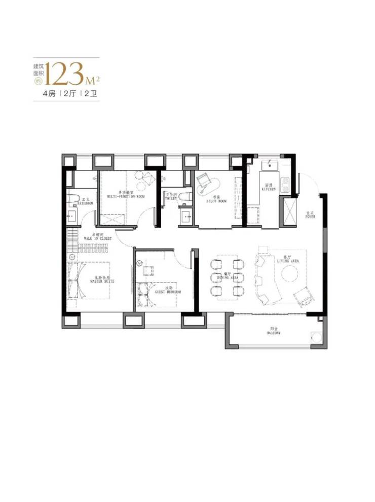 建面约123-129㎡真四房,这个户型的南向面宽和尺度感堪比一般的别墅。