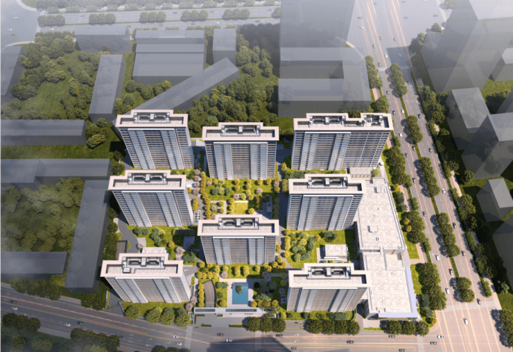 小区采取经典的中轴对称设计手法,结合中心绿化及景观带打造出独特的仪式感和尊重感。