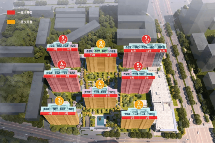 首先, 项目主力户型是建面约103-107㎡3房2卫,此外还有123㎡4房2卫、129㎡4房2卫。