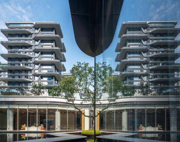 双轴线的设计,充分拓宽了视野面与观赏点位,环形回廊、精神游廊与下沉庭院通过立体景观平台相融,又创造出隔岸听泉的诗意场景。在每个重要生活触点,业主都能拥享独特景观和欣赏视野。