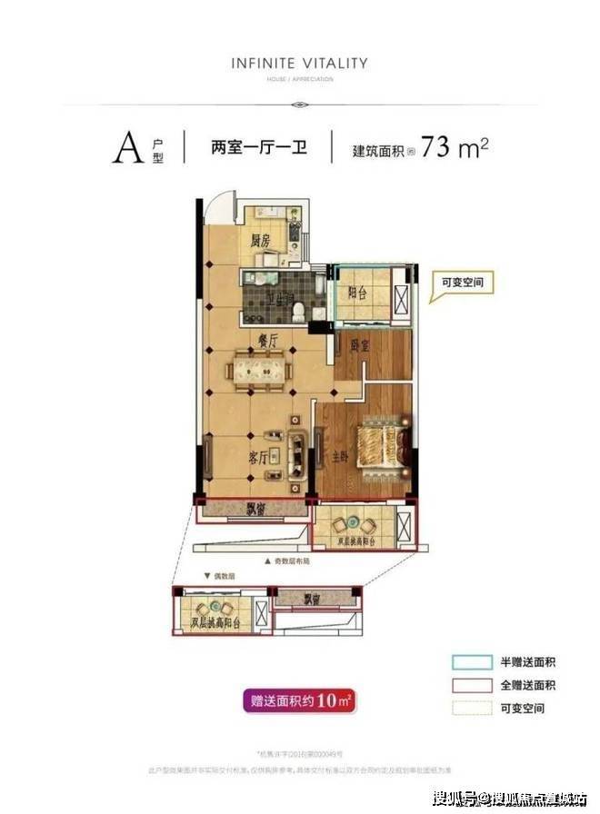 【73方】对于小户型来说,73㎡的户型,也做到了两室两厅一厨一卫,其中它的阳台是云锦城特有的“双层挑高”。相比于“一步到位”的购房者,这类户型更适合刚需家庭。