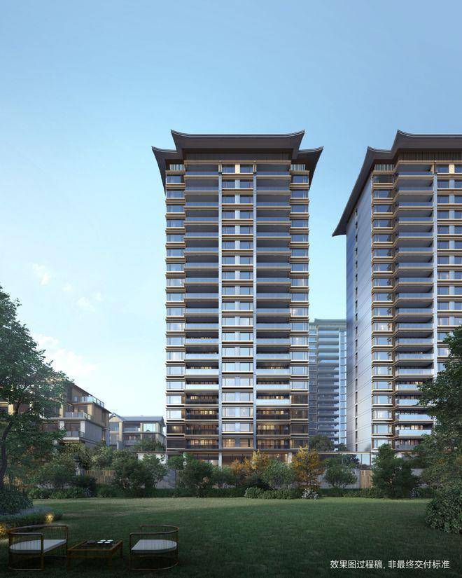 建发英冠·宸云的建筑立面材料主要由四面铝板、石材、大面积玻璃组成,高层屋顶采用了建发标志性的飞檐设计造型。