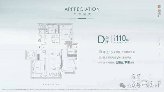 1. 全明房型设计,三开间朝南,阳台,三卧室飘窗设计,让自然诗意延伸;