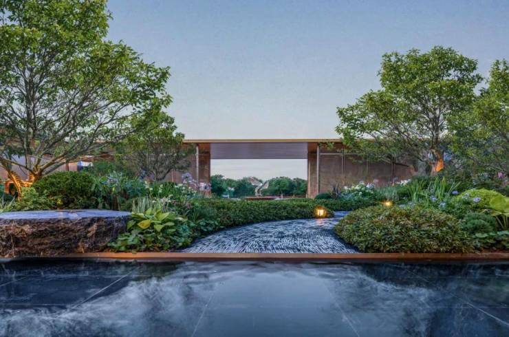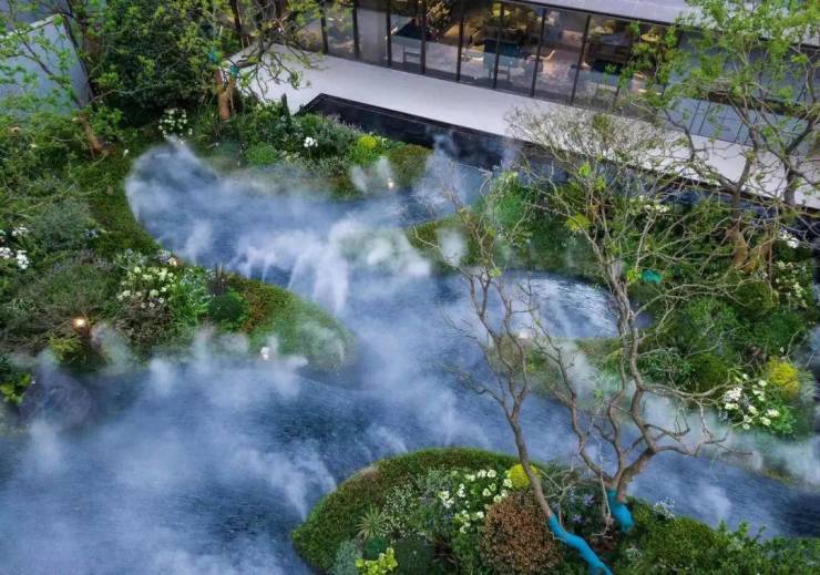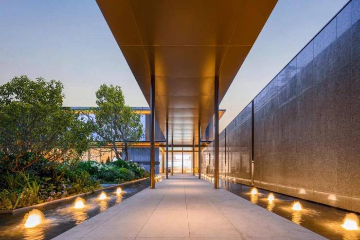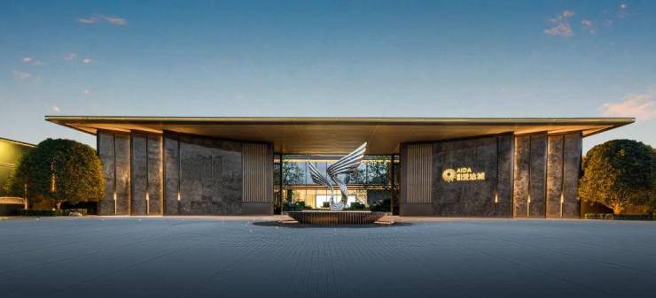 示范区做在实体,也就是未来小区的大门,霸气恢弘,水系景观已呈现,雕塑神似浪花/翅膀,寓意美好!