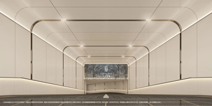 招商臻境,车行入口同样花了极大的心思进行雕琢。相比较市场普通的墙面漆,整个入库车道采用了难得一见的全铝板吊顶与通铺,配合追光式的灯带设计,车辆缓缓驶入,铝板的高级质感与柔和追光的仪式感一点点打开。