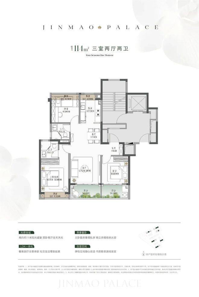 ● 建面约114㎡3房:低总价上车首选,闭眼可冲。