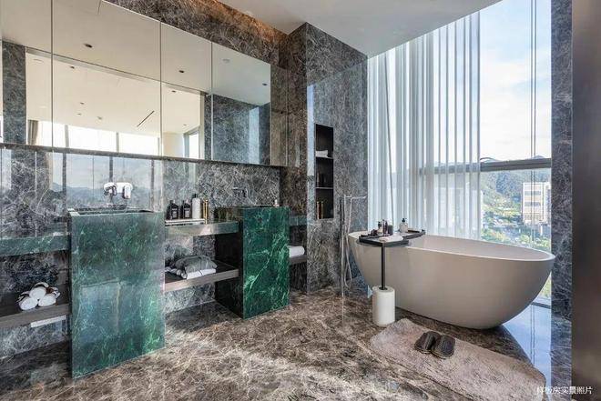 户型特点:主力户型为建面约310㎡山景大平层,客厅面积约70-75㎡,主卧约55㎡,配备全屋国际一线品牌精装(如博世厨电、杜拉维特卫浴)。