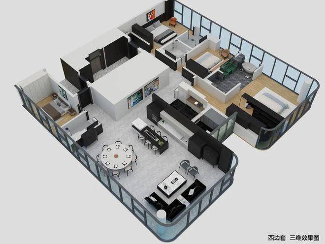 定位:板块内唯一在售精装大平层,户均310㎡,一梯一户设计,层高3.85米,采用玻璃幕墙外立面,270°环幕视野。