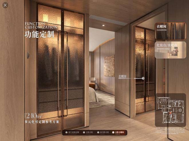 甚至还有功能定制,以240㎡主卧衣帽间为例,提供整体收纳、化妆台、水吧台等多种布局,精准贴合个人生活习惯。