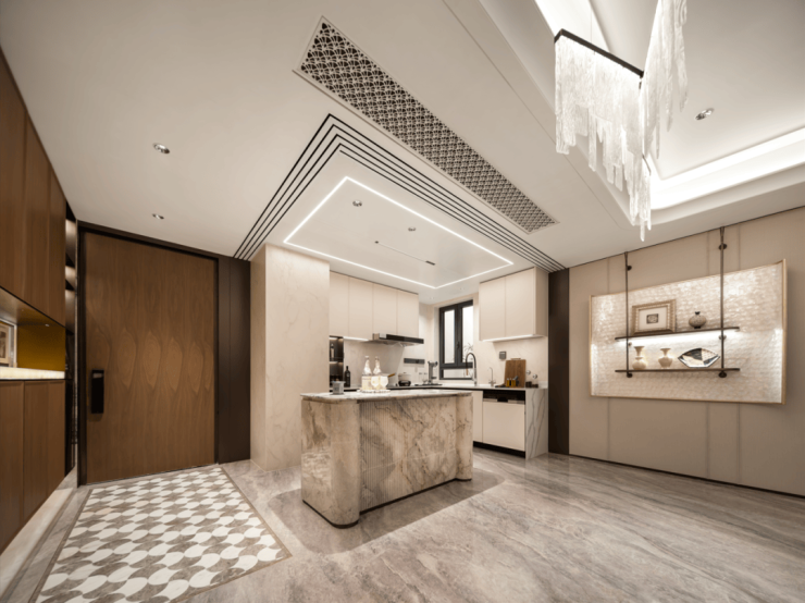 奢侈的空间感不仅体现在面积上,更在于精心的设计、优质的材料与细腻的细节。在海上·清和玺精心的设计、优质的材料以及细腻的细节,才是真正的奢侈所在。就拿通室来说,奢石、奢板、奢皮、奢镜的混合搭配,简直是一场视觉的盛宴,一站式满足了改善客群对于品质的极致追求。
