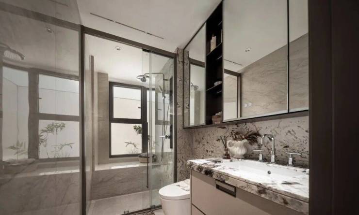 主卧豪华的套房设计,不仅南向有转角飘窗,甚至北侧卫浴都做了转角飘窗,空间延展度超强!