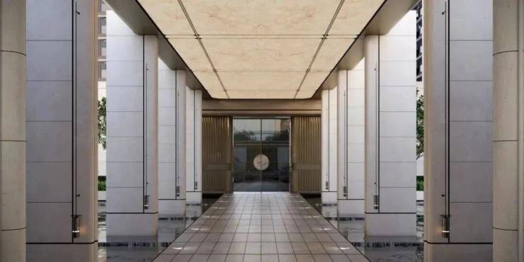 招商序秉持国际视野与在地文化相互融合的设计理念,以上海水位源点“吴淞零点” 「中国最早的水程标高之处」为灵感,创造约66米宽、约6.7米高的“上海之冕”。同时,藉由“吴淞灯塔”及其形制,原创落客雕塑-“源流”,让归家本身也有“温润的昭示和提醒”。